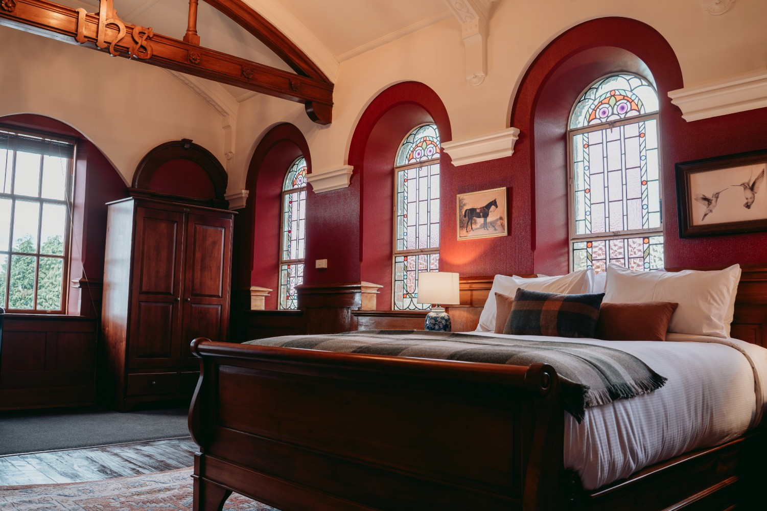 Our Dunedin Heritage King room is located on the ground floor, comes with Bathroom amenities, Large flat screen TV, Bathrobe, slippers, Mini Bar fridge, Wi-fi, Complimentary water. Extra comfy bed and crisp linen for a lovely nights sleep or streaming from the TV.